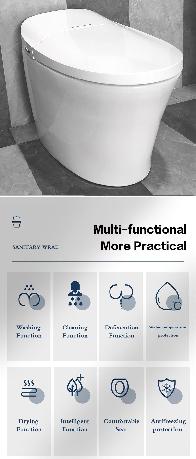 Eight protection design, can effectively prevent leakage, dry burning, spontaneous combustion, high temperature, water burst and other situationsof the intelligent toilets, protect the safety of you and your family, allowing a longer using life of the smart toilet.