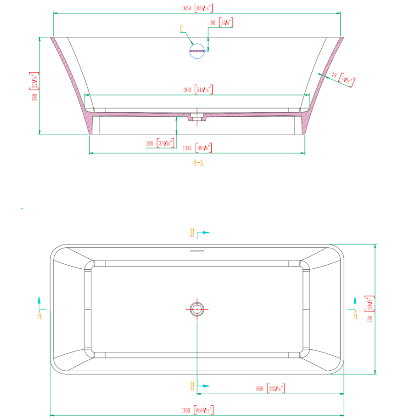 • Solid Surface Flat bottom Freestanding Bathtub in White DM-6096
