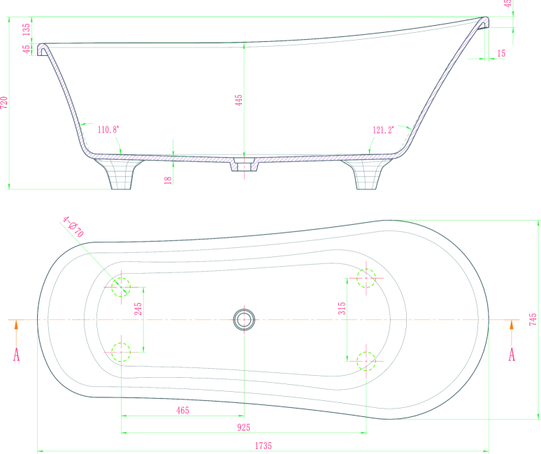 Dimensions: 1735x745x720mm