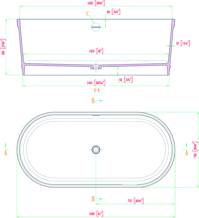 - Drain Placement: Center